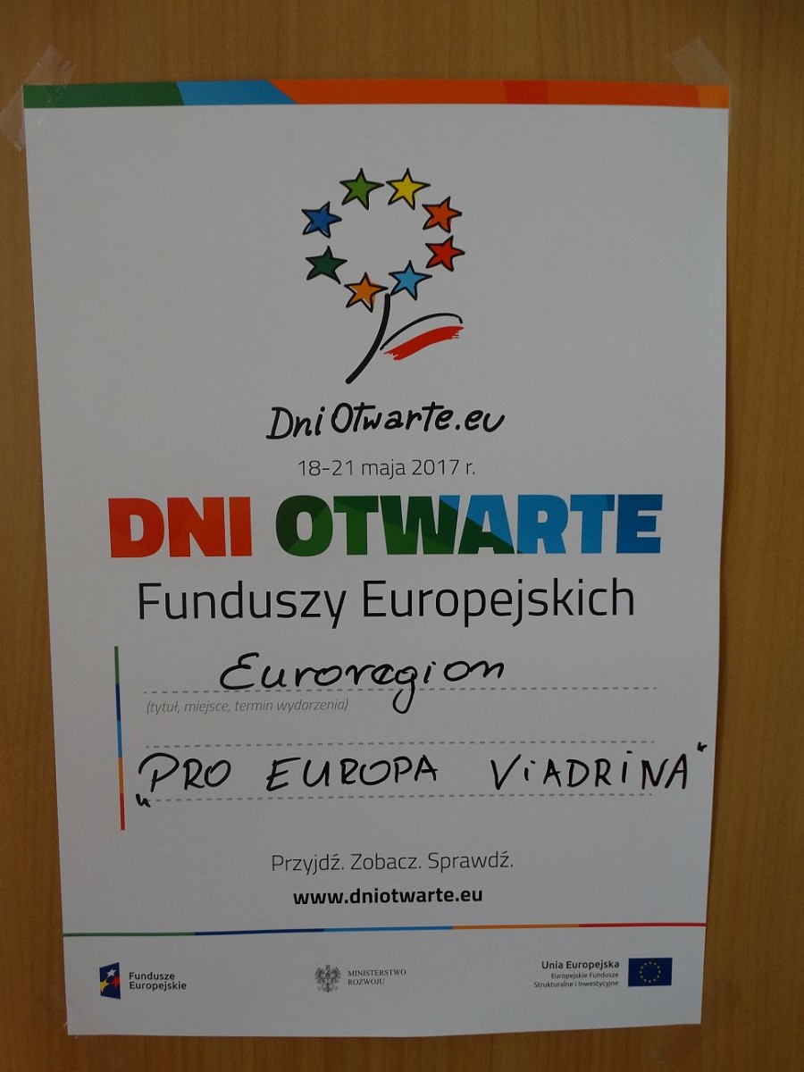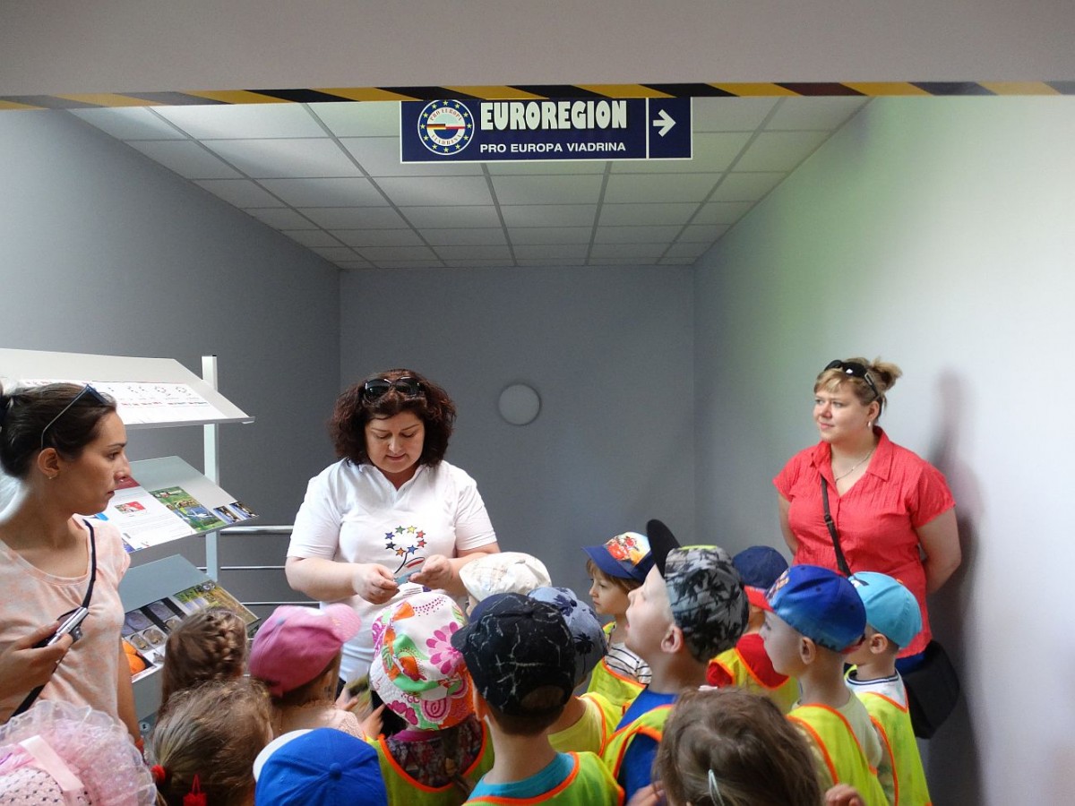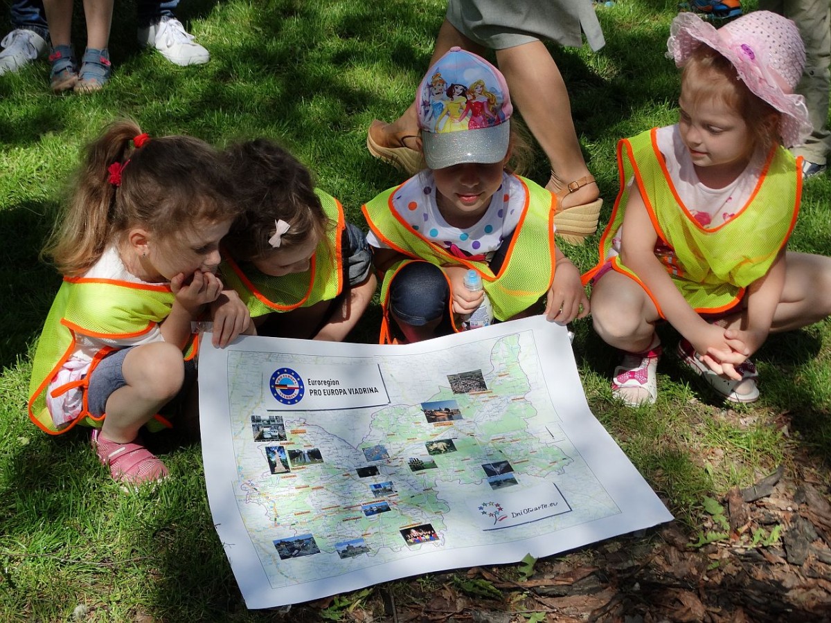 W tym roku pracownicy biura Euroregionu PRO EUROPA VIADRINA przygotowali atrakcje dla dzieci w wieku 5-8 lat! W piątek 19 maja 2017 roku dzieci z przedszkola Tygryska Pietrka wzięły udział w grze terenowej pn. "Skarby Euroregionu PRO EUROPA VIADRINA". Dzieci szukały wskazówek, które doprowadziły je do części mapy. Po znalezieniu wszystkich części ułożyły mapę Euroregionu z atrakcjami turystycznymi. Na koniec zabawy wykonano pamiątkowe zdjęcie, a dzieci otrzymały okolicznościowe gadżety.